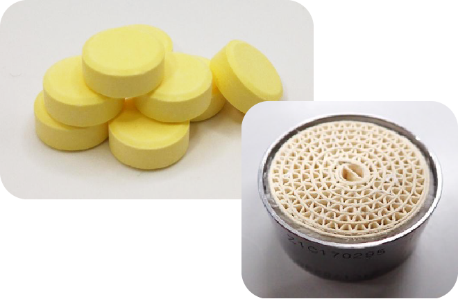 粉状のMOFをフィルターやタブレット状など、デバイスへの搭載方法や使用環境までを考慮し、MOFの効果が最大限に発揮される形に加工します。SyncMOFが独自に培ったノウハウを駆使し、オーダーに沿った加工・大量合成を実現します。