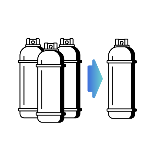 MOFの小さな孔に吸着させることで、ガスを高密度に配列して貯蔵ができます。爆発性ガスも安定して濃縮できるため、安全かつ省スペースな運搬が実現します。